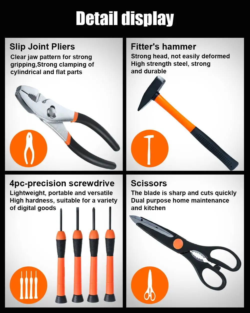 -[CANTIDAD]: Juego de herramientas de reparación del hogar de 39 piezas para el mantenimiento diario del hogar.